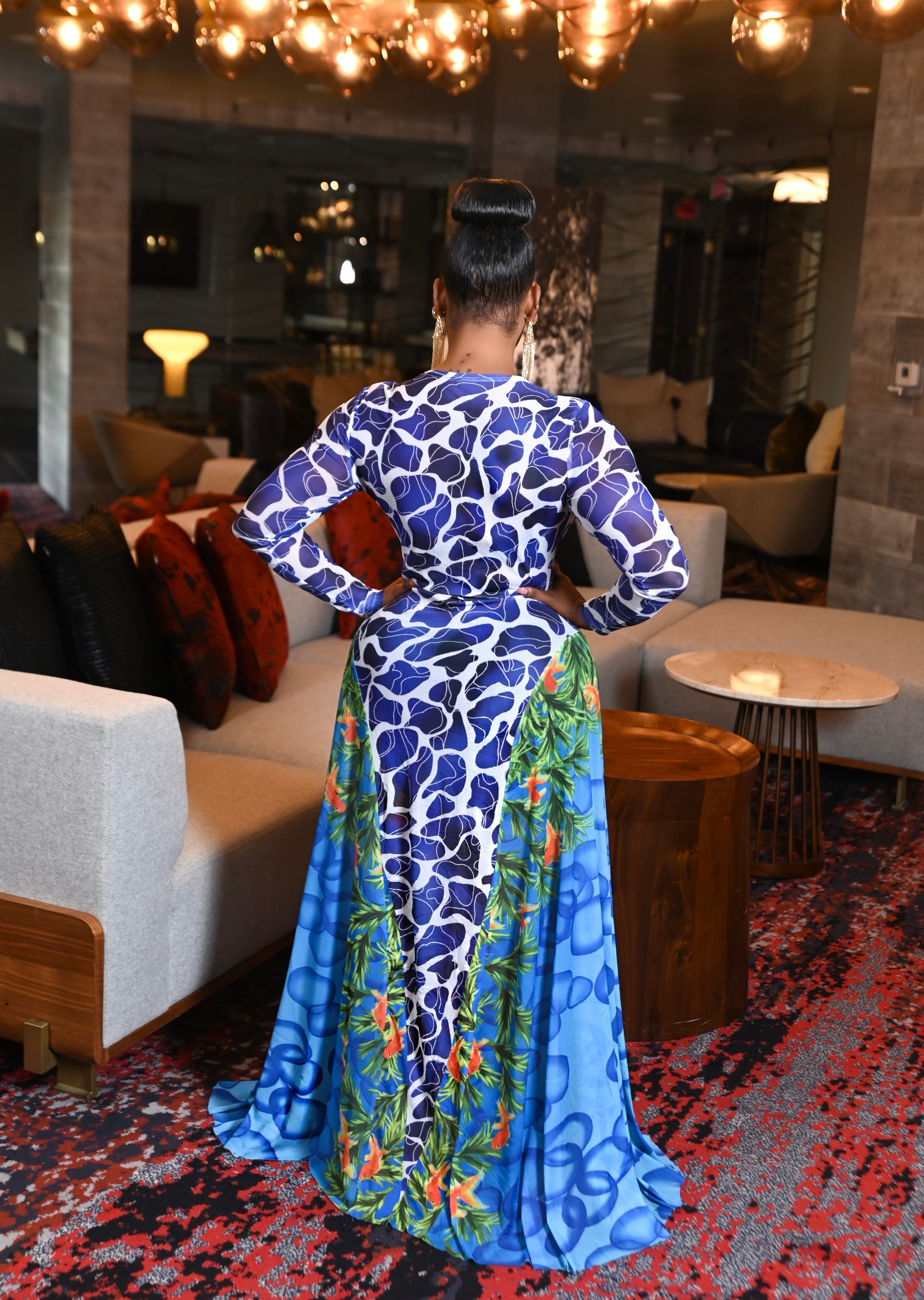 Elevate your style with maxi dress. The sheer fabric beautifully complements the colorful design, making it perfect for any occasion. Enjoy the lightweight and comfortable fit while looking effortlessly chic. Embrace fashion-forward